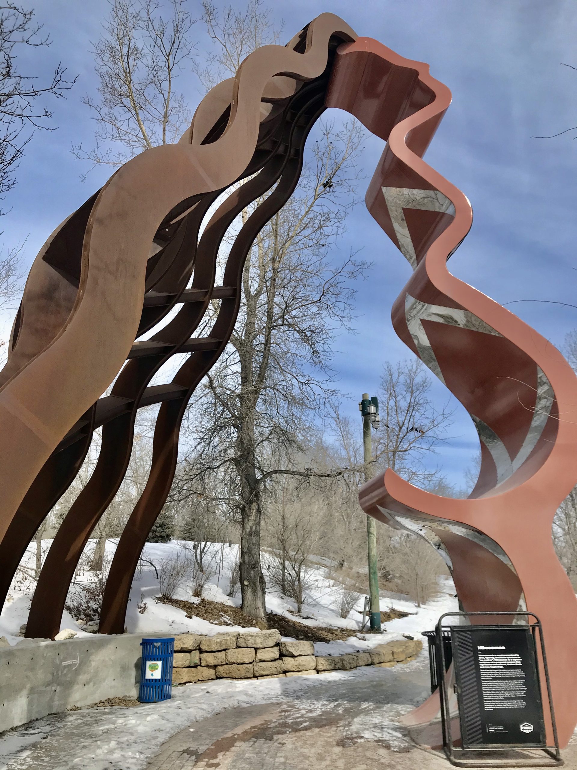 "Niimaamaa" sculpture in Winnipeg by artists KC Adams, Jaimie Isaac and Val Vint (2018). Image courtesy of Caroline Fidan Tyler Doenmez.